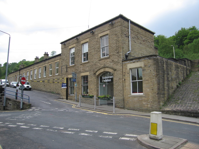 Todmorden station, in the Calder Valley, was the end of a pleasant walk along the Rochdale Canal from Walsden. The approach up the hill to the station: