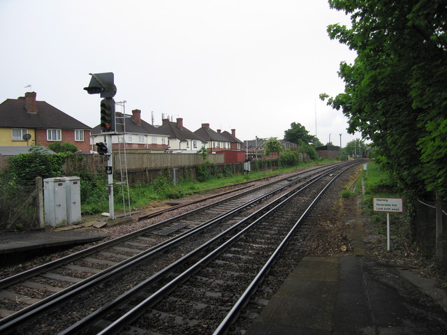 The station is on a slight curve, as can be seen from this photo from the western end of platform 1, looking east: