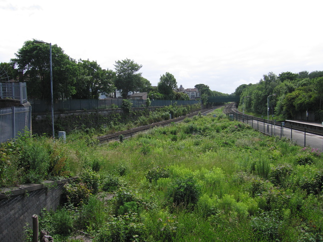 Walton railway station serves the Walton area of Liverpool and is the first station north of where the line branches to Kirkby. From the road bridge to the north of the station looking south: