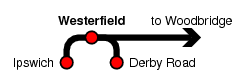 Westerfield station, East of Ipswich on the East Suffolk Line, is the junction with the line to Felixstowe. The Ipswich-bound platform 1 has behind it what looks like another railway building: