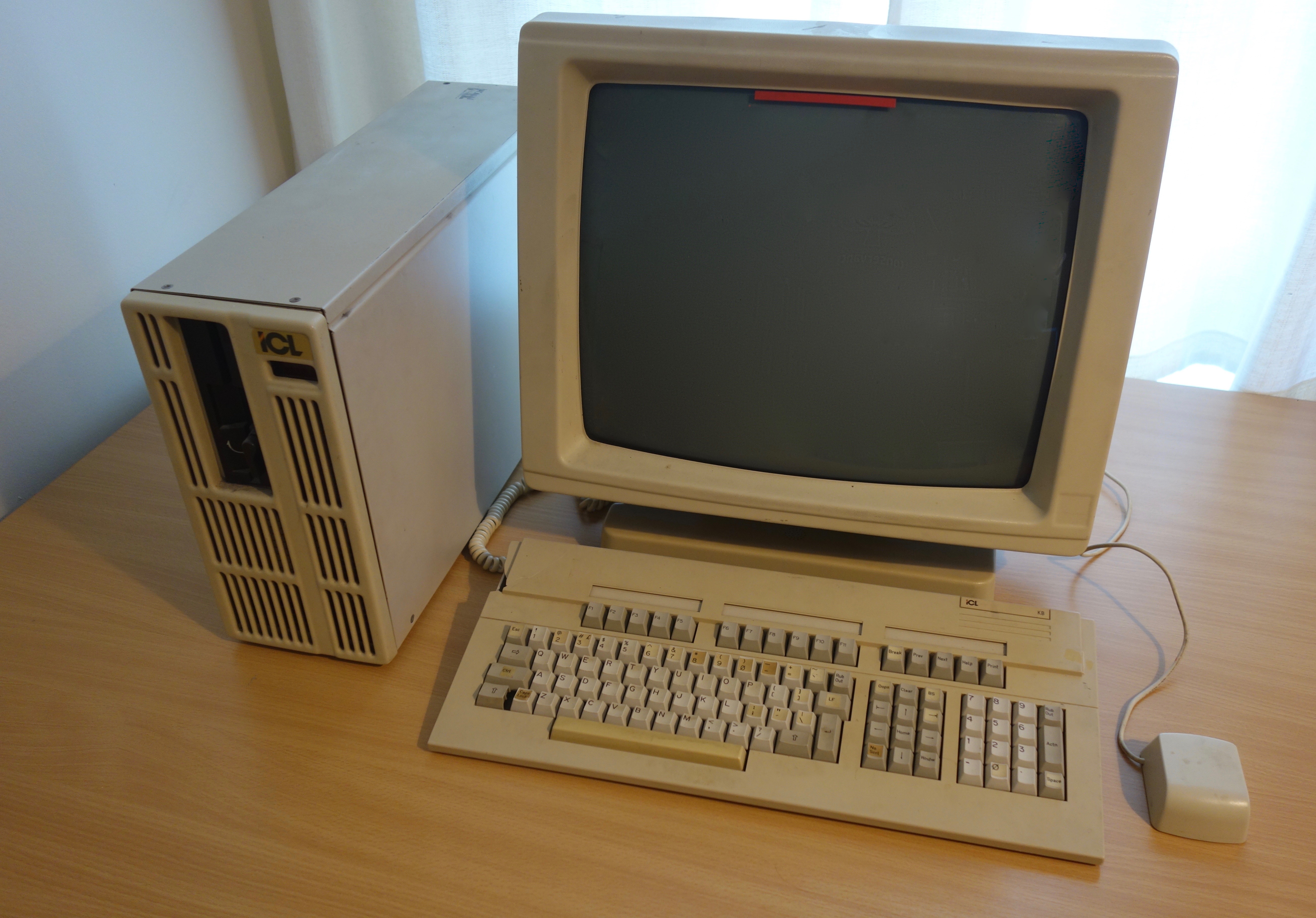 carenath was the first really interesting machine I obtained... carenath is an ICL 3300 Graphics Workstation, also known as a PERQ-3a. You can see my pathetic attempt at a PERQ-3 Trivial FAQ if you like. This is a Unix machine dating from about 1986. It's based on the 68020 processor, and it has the 68881 FPU and also some custom graphics hardware and a huge black and white monitor, as befits a graphics workstation... This machine was still being developed when Perq Systems went bust, so only 30 or so prototypes were ever made. I'm told mine is one of the later ones.
