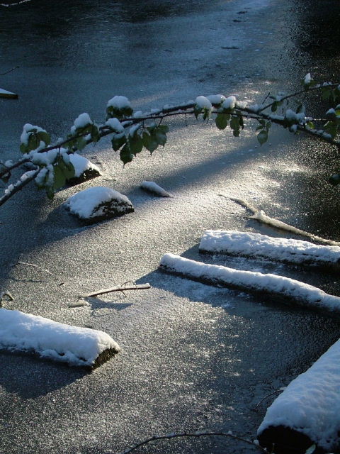 Logs frozen into one of the many pools