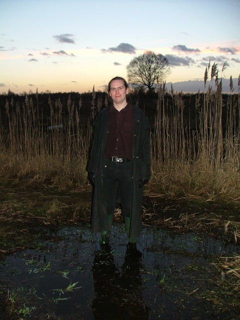 I couldn't get him to stand in the one that came most of the way up his wellies.