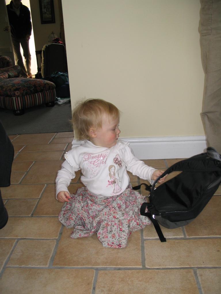 In my pajamas ready to go & visit Kathryn, Stuart & Ben. I wanted to play in the stones so daddy put my wellies on.