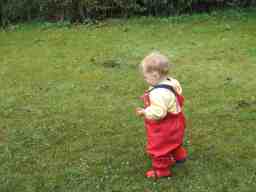 Now I can walk mummy bought me some wellies and Grandma & Grandad brought me this slide from some friends in London. The grass is too wet so it's on the tarmac.
