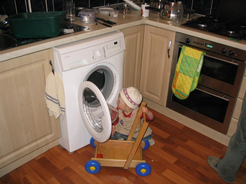 Helping daddy with the washing.