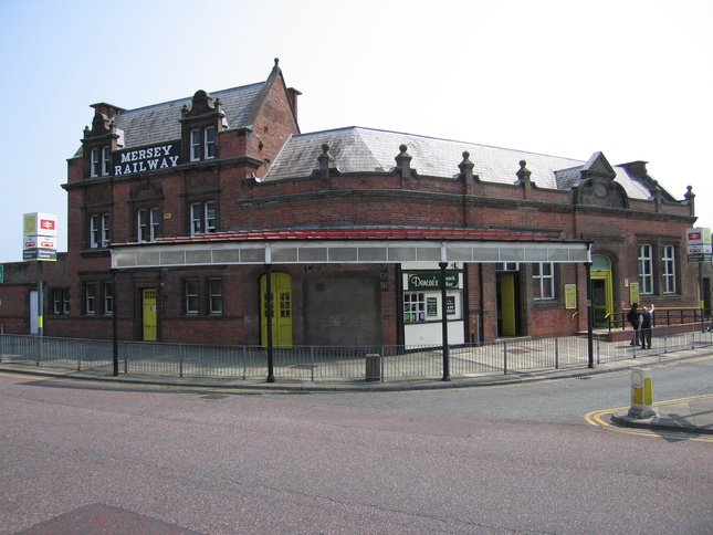 Birkenhead Central station is not the most easy station for pedestrians to get to, sitting as it does on the side of a busy roundabout. It was certainly difficult to get a decent shot of the station's front from the grass in the roundabout's middle: