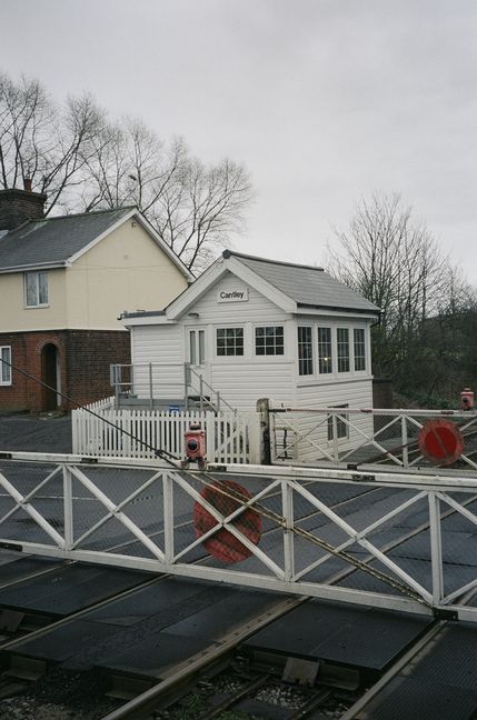 Cantley station is on the southern branch of the Wherry Lines. I walked there on a windy day from Lingwood. The gated level crossing and signal box is the first you see of the station: