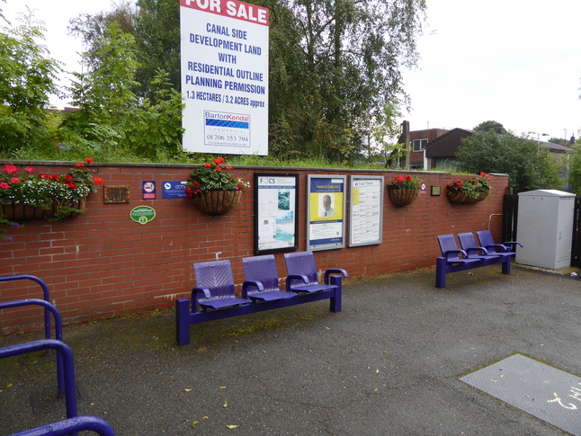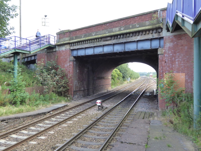 The two platforms are joined by the A664 Manchester Road which passes over the line at the south end of the station. On platform 2, looking at the bridge: