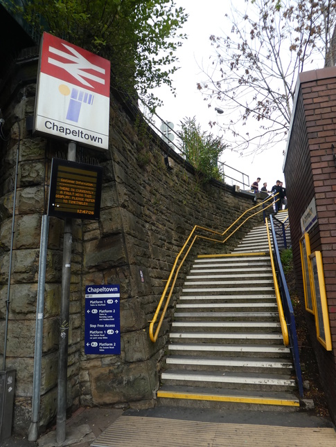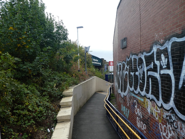 The northern ramped exit from Chapeltown platform 1, providing both a ramped entrance for the wheeled, and easy access to Asda: