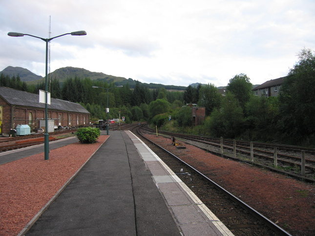Crianlarich is the station on the West Highland lines where the train divides, with the front half heading to Oban and the rear to Fort William and Mallaig. The pause while this happens gives passengers a chance for fresh air, cigarettes, dog exercise, and in my case station photos.