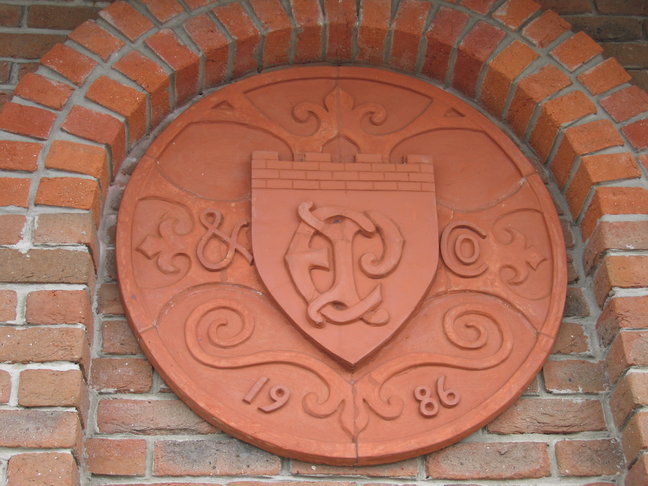 As this crest and sign at the station indicate, the station building was built by Eldridge Pope and Co., once a nearby brewery: