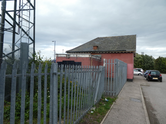 The east side of the station building faces the modern footbridge which leads to both platforms: