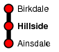 Hillside station serves a suburb of Southport and is the nearest station to the Royal Birkdale golf course. Its frontage is on a road bridge over the line, and has some old-fashioned signage: