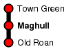 The front of Maghull station building from the concourse area: