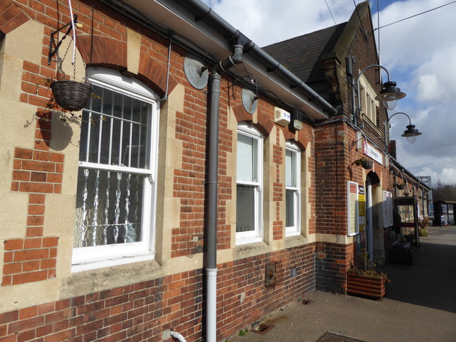 Walking to the front of the station I was presented with a slight problem in photographing it, as a coach was parked in front of it! So here are two long views of the station front: