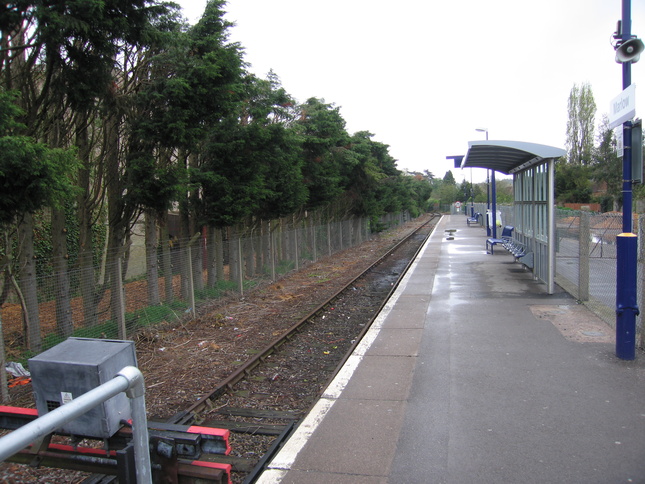 Looking east along the line from the end of the platform: