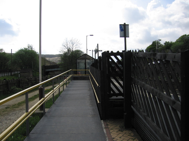Each platform at Marsden has its own separate entrance, and the way to platform 3 is via the road bridge that crosses the line at the western end of the station. A view of the station complex from the road bridge: