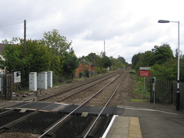Looking east from the end of platform 1, next to the crossing which allows passengers to get between the two platforms: