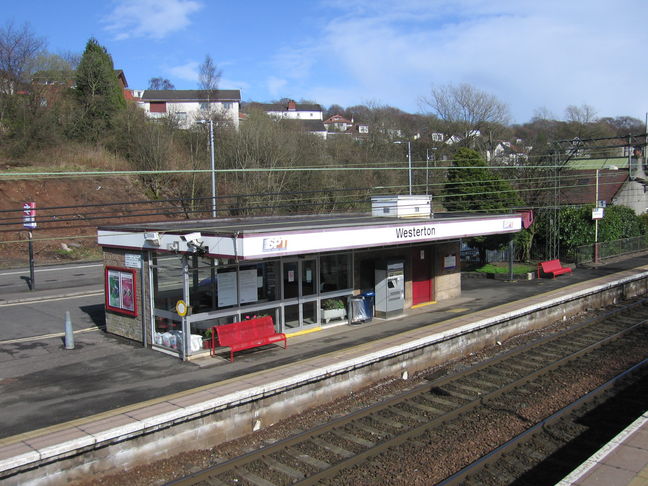 Westerton is a station north of Glasgow, where the line branches west to Dalmuir and north on to Milngavie. The approach to the station is through a pleasant green area: