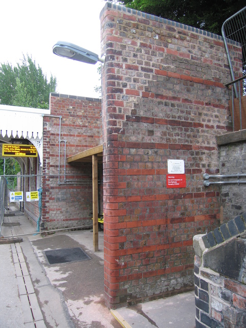 Platform 2 was in a state of transition at the time of our visit. An initial plan to scrap the ironwork-supported canopy in favour of a bus shelter had apparently fallen in the face of local opposition, so something more substantial was being finished on platform 2: