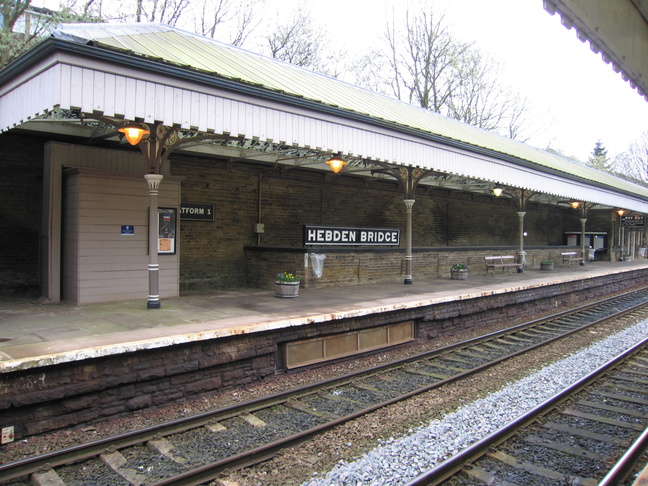 Hebden Bridge station is a beautifully restored station dating originally from the last decade of the 19th Century. The 1997 restoration makes it a welcome gateway to the town, even on a wet day like this! The approach to the station from the car park, just north of the line: