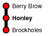 Honley station lies between Brockholes and Berry Brow on the Penistone line south of Huddersfield, and like other stations on the now-singled line there are still traces of the infrastructure for a two-track railway.