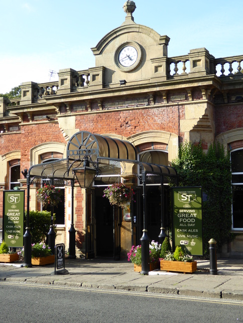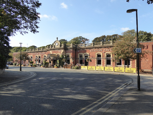 Lytham station is a bit of a treat. Although like the other stations on the Blackpool South branch it's single-track, the large impressive station building wasn't demolished when BR downgraded the station. Now the station building serves as a pub. The front of the station building seen from the south: