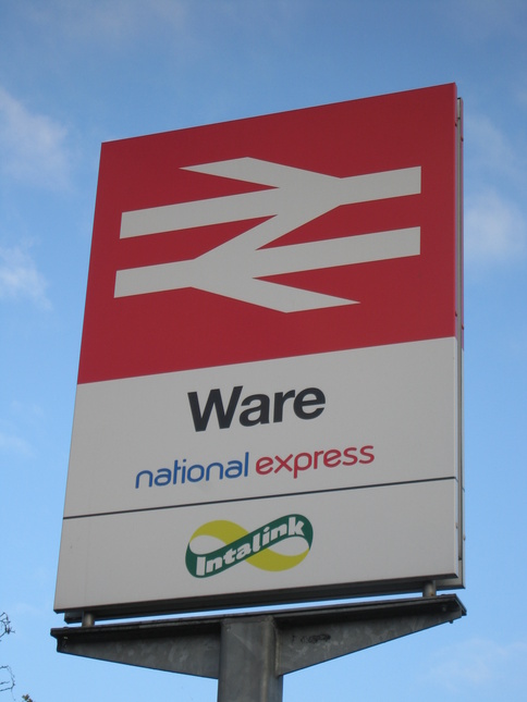 Ware is the last station on the branch from the West Anglia Main Line towards Hertford East. Ware itself is a pretty little town on the river Lea, and was once a significant brewing town with many maltings along the river. Now it still bustles with life and has an interesting little museum.