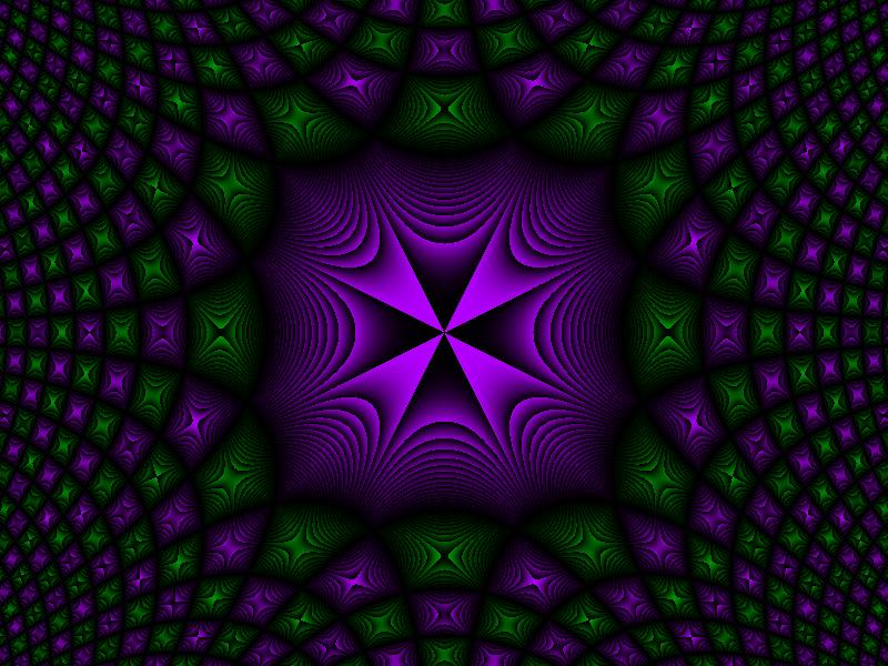 Also, keeping the integer parts of the partial derivatives provides a good way to differentiate one butterfly from the next by changing the colour. Here's what happens if we colour each butterfly purple or green depending on whether the sum of the integer parts of the partial derivatives is even or odd (this looks a bit strange unless the fading effect is used at the same time):