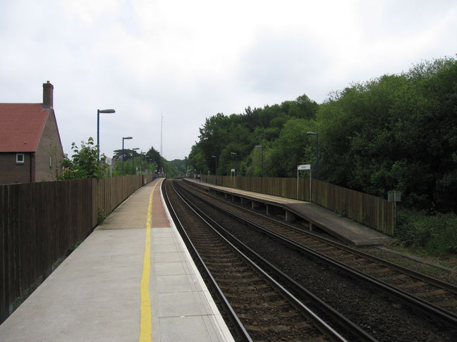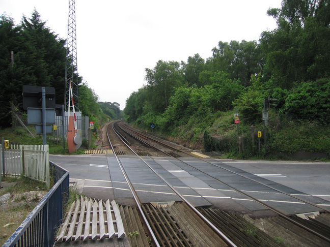 Looking at platform 2 with the entrance on the left next to the level crossing: