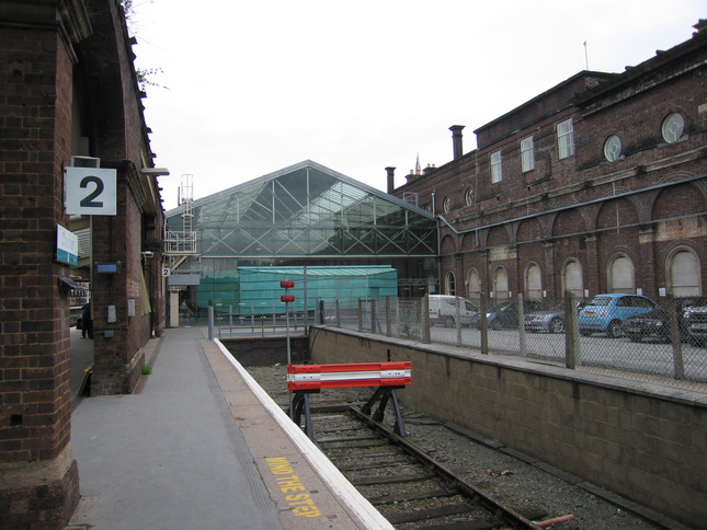 The platform furthest from the entrance to Chester station is platform 7, here looking east: