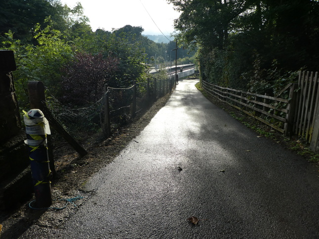 Ramps lead down either side of the line to the platforms. This is the ramp down to platform 1: